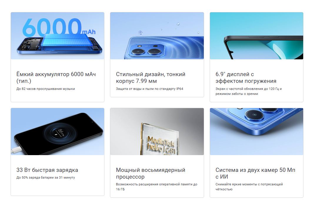 Характеристики Смартфон Redmi 15C 8/256GB Blue/Синий